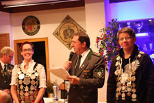 | Schützenkönigin Julia Stark und Jungschützenkönig Max Merk vor der Übergbe der Königsketten an den neuen Schützenkönig. |
